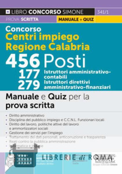 Il manuale "Concorso Centri Impiego Regione Calabria. 456 posti" è destinato alla preparazione dell'unica prova selettiva scritta dei concorsi per 177 Istruttori amministrativo-contabili (aperto ai diplomati) e 279 Istruttori direttivi amministrativo-finanziari (aperto ai laureati) pubblicati in Gazzetta Ufficiale concorsi ed esami n. 104 del 31 dicembre 2021 i bandi del concorso Centri per l'impiego Regione Calabria per 456 posti così suddivisi: 279 di categoria D, profilo professionale istruttore direttivo amministrativo-finanziario (per laureati) e 177 di categoria C, profilo professionale istruttore amministrativo-contabile (per diplomati). Entrambi i bandi prevedono una prova con 40 quiz a risposta multipla sulle stesse materie, anche se con livelli di approfondimento diversi. Per questo motivo, il manuale in aderenza ai bandi, è strutturato nelle seguenti parti: Parte I - Diritto amministrativo; Parte II - Disciplina del pubblico impiego e C.C.N.L. Funzioni locali; Parte III - Trattamento dei dati personali, anticorruzione e trasparenza; Parte IV - Reati contro la pubblica amministrazione; Parte V - Diritto del lavoro; Parte VI - Accesso al mercato del lavoro, politiche attive e gestione dei servizi per l'impiego; Parte VII - Inglese e Informatica. Il libro, pertanto, viene incontro alle esigenze anche di spesa di coloro che in questo periodo si trovano a dover affrontare la preparazione in contemporanea di più concorsi, in quanto tratta gli istituti fondamentali di tutte le materie richieste sia dal bando per diplomati che da quello per laureati, che sono strutturate su due livelli di approfondimento: per chi, come i laureati, ha già una preparazione giuridica di base, lo studio di questo manuale costituirà un momento di ripasso di tutti gli argomenti fondamentali delle varie discipline, che, come è noto, per loro natura possono essere approfondite quasi all'infinito. Si raccomanda per questi profili lo studio anche delle parti stampate nei corpi più piccoli e la lettura comparata dei testi normativi e delle espansioni di approfondimento; per i diplomati, che si presuppone non abbiano alcuna cultura giuridica, lo studio di questo manuale permette, invece, di acquisire una visione generale delle nozioni fondamentali di ogni materia e di comprenderle appieno al fine del superamento delle prove a quiz. Per chi effettivamente si cimenta per la prima volta con le materie giuridiche si raccomanda, inoltre, lo studio preliminare delle Espansioni semplificate di ogni materia. A completamento del manuale, facendo tesoro della tipologia di quiz somministrati negli ultimi concorsi RIPAM, un software online con migliaia di quiz, suddiviso per profili, indispensabili per allenarsi in vista del concorso. Le espansioni online e il software sono disponibili nell'area riservata online, cui si può accedere attraverso il QrCode posto sull'ultima pagina di questo libro. Tutte le informazioni sul concorso Regione Calabria: posti a concorso, modalità di invio della domanda e bandi.