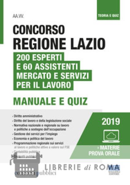 Il presente volume costituisce un utile strumento di preparazione al Concorso della Regione Lazio per 200 posti da Esperto (Cat. D) e 60 posti da Assistente (Cat. C) del Mercato e servizi per il lavoro presso i Centri per l'impiego e le politiche attive del lavoro, pubblicato sulla Gazzetta Ufficiale del 26 giugno 2019, n. 50. Il testo è un valido strumento per affrontare tutte le prove previste dal bando di concorso e presenta una sezione manualistica, seguita da alcune batterie di quiz, sulle seguenti materie: Diritto amministrativo, in particolare la disciplina del pubblico impiego e il C.C.N.L. Funzioni Locali; Diritto del lavoro e della legislazione sociale; Normativa nazionale e regionale in materia di lavoro e politiche a sostegno dell'occupazione, con particolare riferimento al D.lgs. n. 150/2015 e al D.L. n. 4/2019, convertito in Legge n. 26 del 30 marzo 2019, anche con riferimento alla normativa nazionale e regionale sull'inserimento lavorativo delle persone con disabilità e dei soggetti svantaggiati e particolare riferimento ai servizi ai cittadini ed alle imprese, compreso il collocamento mirato forniti dai centri per l'impiego, come individuati dal decreto dal Ministero del lavoro e delle politiche sociali n. 4 dell'11.01.2018; Economia e politica del lavoro; Programmazione regionale in materia di servizi al lavoro e politiche attive a valere sul FSE; Contabilità pubblica, con particolare riferimento all'ordinamento finanziario e contabile delle Regioni; Contratti pubblici. Disponibili nella sezione online, raggiungibile tramite il codice riportato in fondo al volume, le sezioni riguardanti le materie oggetto della prova orale: Delitti contro la Pubblica amministrazione; Normativa su trattamento e protezione dei dati personali; Normativa in materia di prevenzione della corruzione e di trasparenza; Lingua inglese; Informatica. Grazie alle numerose batterie di quiz proposte, il volume garantisce al candidato la possibilità di verificare il livello di preparazione raggiunto e di familiarizzare con la tipologia di prova a quiz.