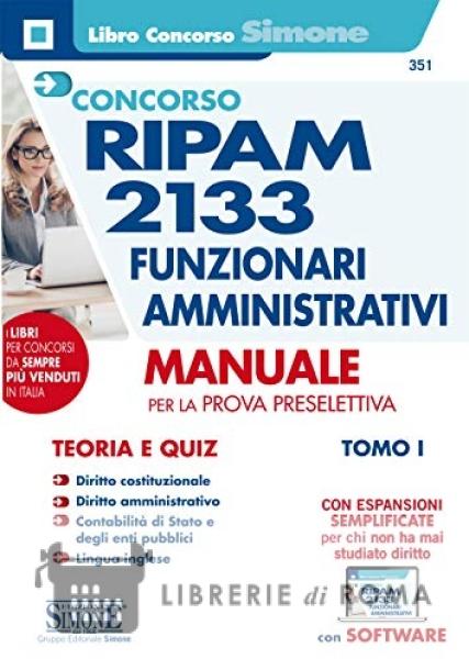 Questo manuale "Concorso RIPAM 2133 Funzionari amministrativi - Manuale per la prova preselettiva - Tomo I" comprende la trattazione delle discipline specialistiche per il concorso, e dei relativi quiz tratti dalle più recenti banche-dati ufficiali RIPAM, nonché i test in Lingua Inglese (commentati), anch'essi selezionati tra quelli inseriti nelle banche-dati RIPAM Nella Gazzetta Ufficiale del 30 giugno 2020, n. 50 è stato pubblicato il bando per il concorso pubblico, per titoli ed esami, finalizzato al reclutamento di 2133 posti di personale non dirigenziale, a tempo pieno e indeterminato, da inquadrare nell'Area funzionale III, nel profilo di Funzionario amministrativo, nei ruoli di diverse amministrazioni. La procedura concorsuale è affidata alla Commissione per l'attuazione del progetto RIPAM, che ha gestito anche molti degli ultimi concorsi banditi nel periodo 2019-2020, prima della sospensione dovuta all'emergenza COVID-19. Il libro, suddiviso in due Tomi, rappresenta un utile supporto per preparare la prova preselettiva, comune a tutti i profili, che consiste in un test, da risolvere in settanta minuti, composto da 50 quesiti a risposta multipla, di cui 25 attitudinali per la verifica della capacità logico-deduttiva, di ragionamento logico-matematico e critico-verbale, 5 di Lingua Inglese e 20 diretti a verificare la conoscenza delle seguenti materie: Diritto costituzionale; Diritto amministrativo; Contabilità di Stato e degli enti pubblici. Questo Tomo I comprende la trattazione delle discipline sopraelencate, e dei relativi quiz tratti dalle più recenti banche-dati ufficiali RIPAM, nonché i test in Lingua Inglese (commentati), anch'essi selezionati tra quelli inseriti nelle banche-dati RIPAM. L'analisi delle materie specialistiche è sintetica ma esaustiva e permette una preparazione completa. Si tratta però di discipline complesse che, per chi non ha mai studiato diritto o contabilità, possono risultare complesse. Per questo motivo, il Manuale è completato da una serie di espansioni semplificate, una per ogni materia, in cui vengono spiegati, con linguaggio semplice e con esempi, le parole chiave e i concetti fondamentali indispensabili per affrontare il loro studio. Grazie a un software (accessibile tramite il QR-Code presente nel testo) sarà poi possibile esercitarsi con infinite simulazioni della prova. Per completare la preparazione alla prova preselettiva è necessario integrare lo studio di questo Tomo I con il Tomo II: Concorso Ripam 2133 Funzionari Amministrativi (codice 351/1). Quiz attitudinali RIPAM commentati: Ragionamento logico-deduttivo, Ragionamento logico-matematico, Ragionamento critico-verbale. Per chi è in possesso di entrambi i Tomi, ricordiamo che il software comprende sia i quiz di logica sia i disciplinari per una perfetta simulazione della prova preselettiva.