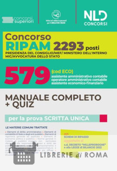 Librerie di Roma | Concorso RIPAM. 2293 posti MEF, Presidenza del consiglio, Ministero dell'interno: manuale completo + quiz concorso 579 posti assistente amministrativo contabile, assistente economi