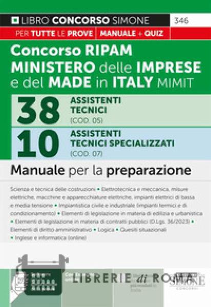 Librerie di Roma | Concorso RIPAM 338 posti ministero delle imprese e del made in Italy MIMIT. 38 assistenti tecnici (COD. 05). 10 Assistenti tecnici specializzati (COD. 07). Manuale per la preparazi