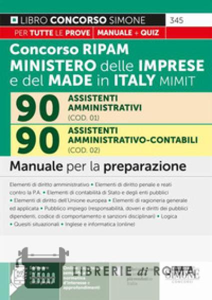Librerie di Roma | Concorso RIPAM 338 posti ministero delle imprese e del made in Italy MIMIT. 90 assistenti amministrativi (COD. 01). 90 assistenti amministrativo-contabili (COD. 02). Manuale per la