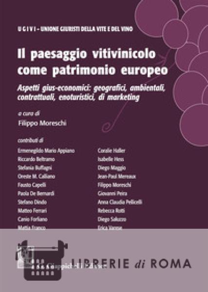L'art. 1 della Legge n. 238/2016, che qualifica il vino, la vite ed i territori viticoli "patrimonio culturale nazionale da tutelare e valorizzare negli aspetti di sostenibilità sociale, economica, produttiva, ambientale e culturale", dischiude nel nostro ordinamento interno una prospettiva di studio inedita, sottolineando i collegamenti tra il settore vitivinicolo ed il paesaggio, l'ambiente, la storia, la cultura ed il marketing. Da questa nuova prospettiva di studio nasce questa raccolta di scritti, intitolata "Il paesaggio vitivinicolo come patrimonio europeo. Aspetti gius-economici: geografici, ambientali, contrattuali, enoturistici, di marketing", pubblicata su iniziativa dell'Unione Giuristi della Vite e del Vino, associazione che da oltre venti anni studia il diritto vitivinicolo. I giuristi e tutti gli studiosi che hanno contribuito alla stesura del testo hanno perciò voluto approfondire questo percorso innovativo in un'ottica multidisciplinare: si va dal costante richiamo alla disciplina internazionale, europea ed interna alla sua applicazione sul piano locale; si parte dall'esame del rapporto tra i territori viticoli e gli strumenti di pianificazione urbanistica per arrivare a "case studies" su singole aziende, esemplificative di un nuovo approccio manageriale al mondo del vino quale fonte di sollecitazioni culturali e paesaggistiche. "Il paesaggio vitivinicolo come patrimonio europeo. Aspetti gius-economici: geografici, ambientali, contrattuali, enoturistici, di marketing" non tralascia il confronto con l'esperienza giuridica, economica e marketing di altri paesi ed analizza le nuove tendenze dell'"enoturismo", secondo le quali la visita al vigneto ed in cantina deve rappresentare una fonte prima di tutto sensoriale-esperienziale per il consumatore. Un testo per gli esperti di discipline giuridico-economiche ma che può diventare elemento di approfondimento per tutti gli attori, privati ed Istituzioni, della filiera vitivinicola.