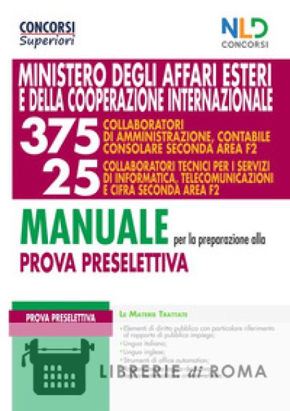 Librerie di Roma | Manuale completo per la prova preselettiva per il Concorso 375 collaboratori di amministrazione contabile consolare seconda Area F2 + 25 collaboratori tecnici per i servizi di info