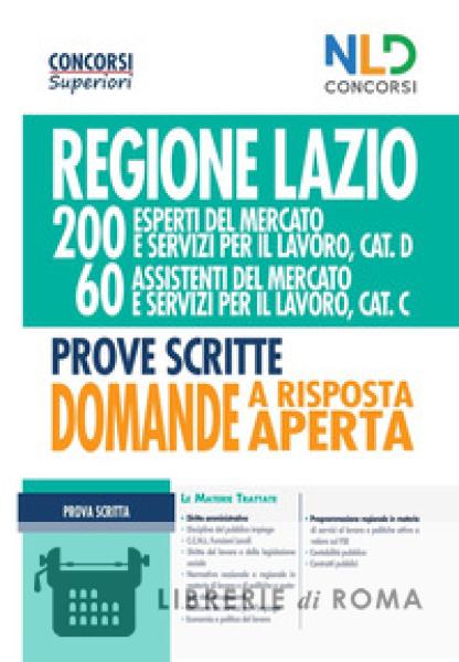 In data 25 giugno 2019, la Regione Lazio ha pubblicato due bandi di concorso, per il potenziamento dei centri per l'impiego e le politiche attive del lavoro, per l'assunzione di 200 unità di personale a tempo pieno e indeterminato, con il profilo professionale di esperto del mercato e servizi per il lavoro, categoria D posizione economica D1, e di 60 unità di personale a tempo pieno e indeterminato, con il profilo professionale di assistente del mercato e servizi per il lavoro, categoria C - posizione economica C1. Le prove concorsuali consistono in due prove scritte, una delle quali può essere a contenuto teorico-pratico e in una prova orale. Le prove scritte hanno a oggetto le seguenti materie: diritto amministrativo, in particolare la disciplina del pubblico impiego e il C.C.N.L. Funzioni Locali; diritto del lavoro e della legislazione sociale; normativa nazionale e regionale in materia di lavoro e di politiche a sostegno dell'occupazione, con particolare riferimento al D.lgs. n. 150/2015 "Disposizioni per il riordino della normativa in materia di servizi per il lavoro e di politiche attive, ai sensi dell'articolo 1, comma 3, della legge 10 dicembre 2014, n. 183" e al D.L. n. 4/2019, convertito in Legge n. 26 del 30 marzo 2019 "Disposizioni urgenti in materia di reddito di cittadinanza e di pensioni", anche con riferimento alla normativa nazionale e regionale relativa all'inserimento lavorativo delle persone con disabilità e dei soggetti svantaggiati; gestione dei servizi per l'impiego, con particolare riferimento ai servizi ai cittadini e alle imprese, compreso il collocamento mirato, forniti dai centri per l'impiego, come individuati dal decreto dal Ministero del lavoro e delle politiche sociali n. 4 dell'11 gennaio 2018; economia e politica del lavoro; programmazione regionale in materia di servizi al lavoro e politiche attive a valere sul FSE; contabilità pubblica, con particolare riferimento all'ordinamento finanziario e contabile delle Regioni; contratti pubblici. Il presente volume costituisce uno strumento per lo studio e la preparazione alle due prove scritte del concorso, contenendo una esemplificazione dei quesiti a risposta sintetica, suddivisi per materia.
