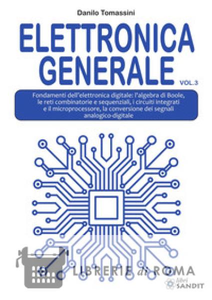 Il presente volume (il terzo) è l'ultimo della collana di Elettronica Generale e introduce i fondamenti dell'elettronica digitale. È di fondamentale importanza in quanto tratta i dispositivi elettronici digitali, mediante i quali vengono realizzati strumenti e apparati che trovano applicazione in molte discipline: dalle telecomunicazioni (router, switch, TV), all'elettronica industriale (automazione) e di consumo (elettrodomestici, PC). È suddiviso in quattro moduli, ciascuno dei quali costituito da più unità didattiche. Il primo modulo introduce le nozioni basilari dell'algebra di Boole, ovvero le porte logiche fondamentali (AND, OR e NOT) e quelle composte (NAND, NOR, XOR), nonché i teoremi fondamentali e le forme canoniche delle funzioni logiche e la loro semplificazione tramite le mappe di Karnaugh. Il secondo modulo tratta le reti digitali, combinatorie e sequenziali, con particolare riferimento all'analisi e al progetto, nonché alle loro principali applicazioni (sommatori, multiplex, demultiplex, codificatori, decodificatori, display a 7 segmenti, per quanto riguarda le reti combinatorie e latch, flip-flop, registri contatori asincroni e sincroni, per quanto riguarda le reti sequenziali). Nel terzo modulo sono descritti i circuiti integrati, con particolare riferimento alle famigli logiche (TTL e C-MOS) e ai microprocessori (CISC e RISC), nonché alle memorie a semiconduttore. Infine, il quarto modulo è dedicato alla conversione analogico-digitale e digitale-analogico dei segnali, con particolare riferimento al processo di digitalizzazione di un segnale analogico (campionamento, quantizzazione, codifica), e all'architettura dei vari convertitori, nonché ai sistemi di acquisizione dati. I numerosi esempi applicativi svolti arricchiscono l'opera rendendola completa e aggiornata.