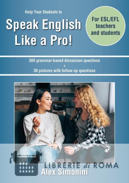 Questo libro di pratica della lingua inglese è pensato per i docenti che hanno bisogno di invogliare i propri studenti a parlare, usando la grammatica che gli avete insegnato. Questo permette di afferrare meglio l'uso dei tempi verbali e altre strutture grammaticali, di potenziare il vocabolario e quindi imparare a parlare con più disinvoltura e accuratezza. Contiene più di 300 domande per una varietà di argomenti per studenti dall'età adolescente in su. Ogni set di 15 domande è stato ideato per aiutare gli studenti a produrre la grammatica che hanno imparato, così da consolidarla e renderla più pratica meno teorica. C'è anche una sezione con 30 immagini da raffrontare con suggerimenti grammaticali e domade di approfondimento sull'argomento.