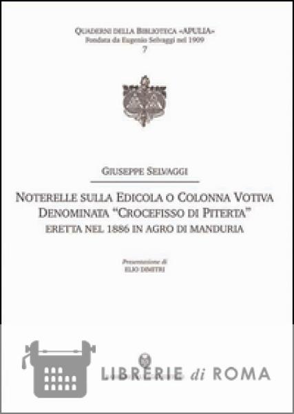 Librerie di Roma | Noterelle sulla edicola o colonna votiva denominata «Crocefisso di Piterta». Eretta nel 1886 in agro di Manduria