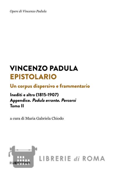 Il volume, diviso in due Tomi, contiene l'intera raccolta della Corrispondenza di Vincenzo Padula, per un totale di 552 lettere, in gran parte inedite, depositate presso la Fondazione Padula di Acri. Il Fondo documentario, oltre a quelli di famiglia, comprende gli scambi epistolari con interlocutori di rilievo, dal sindaco-senatore Vincenzo Sprovieri ai ministri Cesare Correnti, Silvio Spaventa e Francesco De Sanctis, oltre agli apprezzamenti di Benedetto Croce. Ripercorrendo la vita errabonda di Padula, si vuole offrire il suo svelarsi di uomo e personaggio, nella sua indole irrequieta, oscillante tra prete rosso e prete libertino, che si esprime in un precoce esempio di giornalismo d'inchiesta e nella modernità della sua poesia, con le note più sincere per l'indimenticabile Fragoletta, accanto a quelle ribelli, aspre e beffarde. Emblematica è la rappresentazione della donna, di cui Padula denuncia la subalternità, indicandone l'emancipazione con l'allargamento del suffragio elettorale, anche se, in ambito familiare, non si oppone al persistere secolare del sopruso delle strategie matrimoniali.