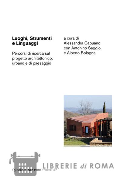 "Luoghi, strumenti e linguaggi" presenta una serie di saggi che sono il frutto di sette originali ricerche sviluppate all'interno del Dipartimento di Architettura e Progetto a Sapienza Università di Roma. Luoghi accoglie tre saggi che restituiscono temi connessi al progetto urbano e di paesaggio della Capitale. Angela Fiorelli indaga il ruolo assunto dalle Mura Serviane nella definizione della forma contemporanea della città. Anna Lei riflette intorno alla ricerca progettuale, all'attività pedagogica e al lascito intellettuale di Vittoria Calzolari. Benedetta Di Donato studia le ricadute sul lavoro di Marcello Piacentini del movimento americano Beautiful City, anche a proposito del progetto della Città Universitaria di Roma. Strumenti raccoglie scritti che vertono sulle metodologie analitiche di ricerca in relazione a temi di natura urbana e architettonica.