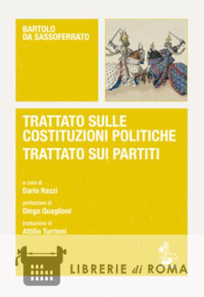 "I trattati di Bartolo sulle costituzioni politiche e sui partiti sono due brevi ma densissime opere di dottrina, che insieme al trattato sulla tirannide, già apparso in questa collana, formano una trilogia del pensiero politico del grande giurista di Sassoferrato e compendiano i principali temi che il diritto pubblico medievale ha trasmesso in eredità alla modernità. Dario Razzi ne offre qui una riedizione conforme al testo critico da me curato ormai molto tempo fa, affiancata dalla traduzione di Attilio Turrioni, contribuendo in tal modo a una significativa ripresa dell'interesse degli studiosi e dei lettori colti per la migliore tradizione costituzionalistica italiana... Il presente volume, in questo senso, costituisce semplicemente lo sviluppo di una maturità postuma della parola del maggiore giurista della tradizione italiana, nella quale, se si è capaci di tendere un filo che la faccia ancora vibrare, è possibile sentire ancora vivi e 'nostri' i grandi problemi della relazione tra diritto e potere che affondano le loro radici nella complessità degli ordinamenti giuridici medievali." (dalla Prefazione di Diego Quaglioni)