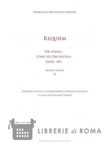 «Tu vuoi ch'io ti tenga allegro, e come vuoi tu ch'io faccio, se scrivo in questo momento un Requiem?»: fonti, criteri di revisione e fasi compositive del Requiem Kind. 183; "Tu vuoi averne un'analisi: ebbene eccotela qua in succinto": lettura analitica del Requiem Kind. 183; N. 1 Requiem, mi minore, 2/2, senza indicazione di andamento, battute 1-291; Kyrie, la minore/maggiore, 2/2, Più lento, battute 292-407; N. 2 Dies irae, la minore/La maggiore, 2/2, Allegro con fuoco, 249 battute; N. 3 Tuba mirum, re minore, C, Allegro appassionato, 313 battute; N. 4 Rex tremendae, fa minore, C, Allegro molto, 162 battute XXI; N. 5 Recordare, fa maggiore, 2/2, Moderato, battute 194 battute; Interludio orchestrale, battute 195-260. La ripresa del Dies irae, 43 battute; N. 6 Ingemisco, la minore, 2/2, un po' più lento, battute 1-62; «Ora sono arrivato con ciò alla metà del Requiem e ho terminata la parte più importante del medesimo»: gli abbozzi degli ultimi numeri del Requiem musicati da Busoni.