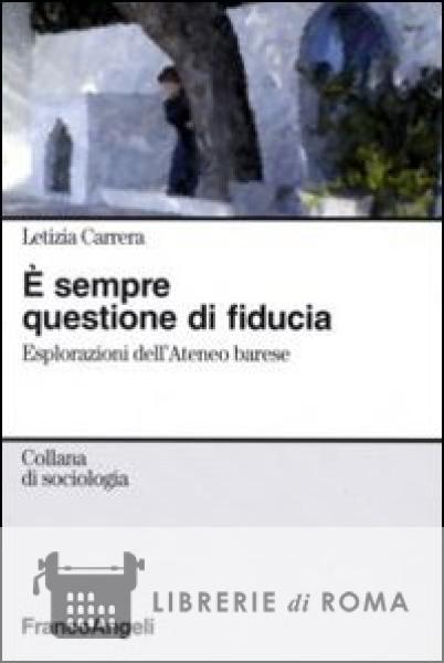 Il testo è strutturato in tre capitoli: nel primo si recupera e si discute la letteratura di riferimento sul tema della fiducia, rivedendone le categorie principali. Nel secondo il tema della fiducia viene declinato in riferimento a tre ambiti chiave del contesto societario: la politica, l'economia (mercati finanziari, cooperazione territoriale e risorse umane), la città. L'analisi teorica è poi completata da un'indagine esplorativa che, a partire dalle categorie precedentemente analizzate, utilizza una metodologia qualitativa per guardare alle forme e ai tipi di fiducia da parte di alcuni studenti dell'Ateneo barese rispetto alla stessa Università di Bari.