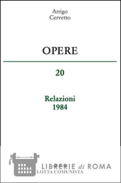 Nei materiali per le relazioni tenute nel 1984, Cervetto analizza gli aspetti strutturali dello sviluppo, dedicando una particolare attenzione al processo di proletarizzazione mondiale, ai movimenti demografici che coinvolgono le grandi metropoli imputridite dell'imperialismo, con la formazione di nuove stratificazioni sociali e l'esplosione di forti contraddizioni. Molto spazio - anche con approfondimenti sulle presidenziali del passato - è dedicato alla campagna per le elezioni presidenziali americane che crea una situazione di attesa e incertezza nei rapporti fra gli Stati Uniti, l'URSS e la Germania. La lotta politica in Italia è caratterizzata dalla battaglia sul decreto legge sulla scala mobile che va vista, secondo Cervetto, come scontro PCI-PSI. La metropoli italiana ha agganciato la ripresa grazie alle esportazioni che sono cresciute a un ritmo superiore a quello del commercio mondiale, ma fatica a reggerne il passo. Come in tutti i volumi delle "Opere" che raccolgono le relazioni di Cervetto, si riscontra come lo sforzo analitico davvero imponente sia legato alla battaglia politica di partito, con vere e proprie indicazioni di lavoro nella battaglia organizzativa.