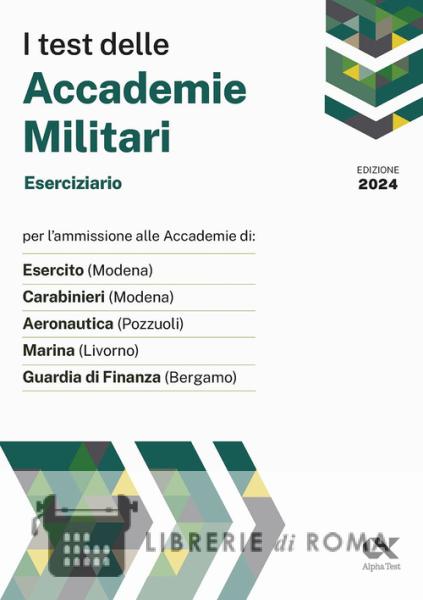 I test delle Accademie Militari. Eserciziario. Per l'ammissione alle Accademie di Esercito (Modena), Carabinieri (Modena), Aeronautica (Pozzuoli), Marina (Livorno), Guardia di Finanza (Bergamo). In una nuova e più ricca edizione, questo eserciziario propone 700 quesiti a risposta multipla su tutte le materie oggetto dei test di ammissione alle Accademie Militari italiane. Ogni domanda è corredata da un commento esplicativo, con opportuni richiami di teoria per chiarire ogni dubbio. Grazie alle spiegazioni e alle prove conclusive il lettore può verificare e migliorare la propria preparazione in vista del test ufficiale.