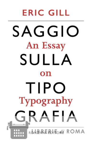 Eric Gill scrive il "Saggio sulla tipografia" nel 1931, e affida a queste pagine la quintessenza del suo pensiero: una visione complessiva del ruolo della tipografia e della stampa nel mondo moderno, ma anche le sue peculiari idee sulla nuova identità dell'uomo in una società industriale. Gill affronta la storia e l'evoluzione delle lettere, il disegno dei caratteri, la progettazione della pagina, la preparazione di inchiostri e colori, la produzione della carta, la rilegatura, e persino l'ortografia. È l'unico grande contributo teorico di Gill sulla tipografia e rimane una lettura per chiunque sia interessato all'arte delle lettere, alla loro forma e funzione, di cui Gill è un indiscusso maestro. Questa edizione è interamente riveduta, accompagnata dal testo originale inglese, e realizzata in un progetto grafico del tutto nuovo, elaborato sulle idee e sull'esempio del lavoro di Eric Gill. Un classico della moderna arte tipografica.