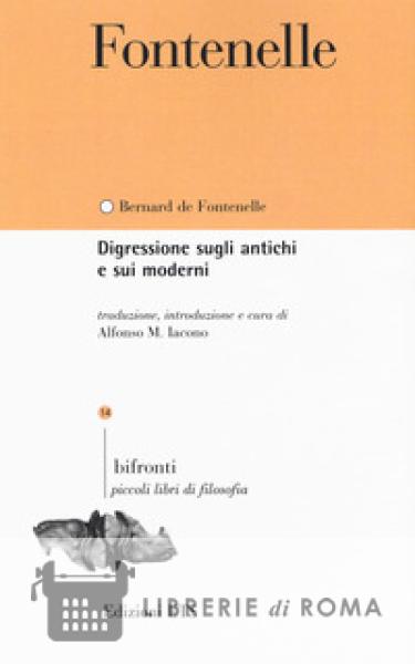 "La Digression sur les anciens et les modernes", che Bernard de Fontenelle pubblicò nel 1688, non è solo uno degli scritti più celebri della famosa "Querelle des anciens et des modernes", ma è anche un punto di riferimento quasi obbligato per un'indagine critica sul senso della modernità. Rottura con l'autorità del passato, mutamento del ruolo del futuro, consapevolezza del proprio presente: questi sono gli elementi che vanno a collocarsi in una nuova visione del tempo storico che si affermerà nell'Illuminismo. Nonostante ciò la modernità oscilla ancora tra la difesa degli effetti liberatori a cui non vuole rinunciare e la cattiva coscienza per gli effetti distruttivi che un arrogante senso di superiorità ha prodotto e continua a produrre.