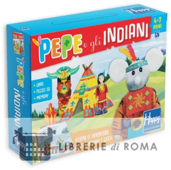 Leggi la storia e scopri le avventure di Pepe Indiano, poi gioca con il memory di Pepe Seduto, con 18 cards e le immagini di Pepe e i suoi amici indiani. Monta il villaggio degli indiani e... buon divertimento! Età di lettura: da 3 anni.