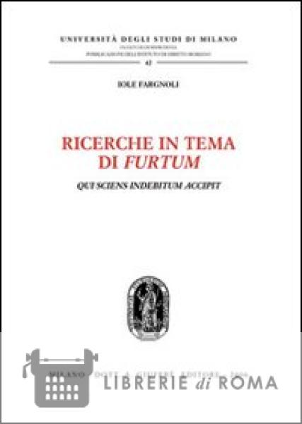 Librerie di Roma | Ricerche in tema di furtum. Qui sciens indebitum accipit