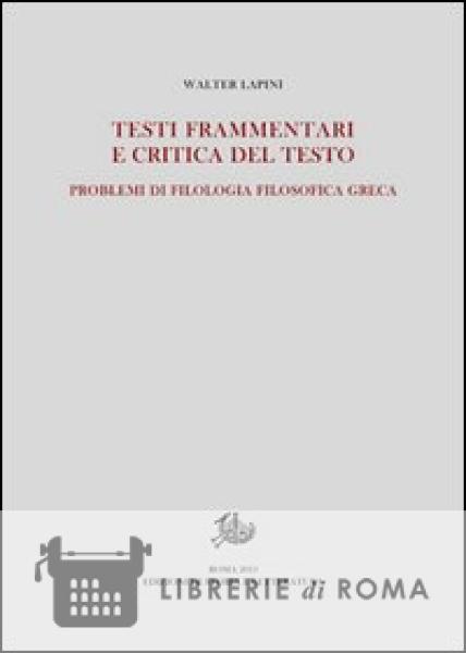Librerie di Roma | Testi frammentari e critica del testo. Problemi di filologia filosofica greca