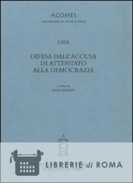 Lisia: modello insuperato di oratoria giudiziaria. L'oratoria attica è una miniera unica per conoscere la società del V e IV secolo a. C., per esplorarne valori, credenze e ideologie. Certo le orazioni forensi non sono da considerare come fonti storiche tout court, ma sono una documentazione utile a comprendere come si formava e tramandava la memoria collettiva nell'antica Grecia. Esse si offrono in una lettura critica che tiene conto del loro contesto originario e del nesso tra la strategia retorica e l'occasione giudiziaria. Infatti se in Contro Eratostene Lisia denunciava i trenta tiranni che nel 404 avevano abolito la democrazia, nella Difesa dall'accusa di attentato alla democrazia difende un nuovo cliente e quella stessa oligarchia che aveva combattuto i democratici. Questa edizione - con il testo greco e la traduzione italiana a fronte - inquadra l'orazione sul piano storico-culturale e cerca di chiarire i risvolti filologici, retorico-argomentativi ed eruditi.