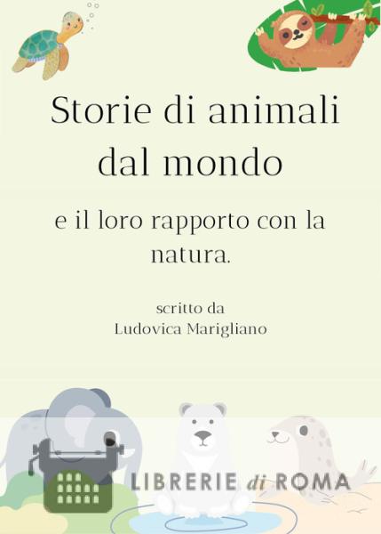 "Storie di animali dal mondo - e il loro rapporto con la natura" è una raccolta di cinque storie per bambini. Non si tratta di semplici storie: esse sono dei veri e propri esempi di ciò che accade nel mondo reale agli animali in via di estinzione e alla natura, visti da una prospettiva infantile. L'intento di queste storie è cercare di educare i bambini fin dalla tenera età al rispetto dell'ambiente e degli animali, mettendoli a conoscenza delle problematiche che affliggono le specie a rischio, in questo caso: i bradipi, gli elefanti, gli orsi polari, le tartarughe marine e le foche.Il messaggio vuole essere trasmesso nel modo più semplice e chiaro possibile attraverso i dialoghi tra animali e i disegni che ritraggono questi ultimi. Età di lettura: da 5 anni.