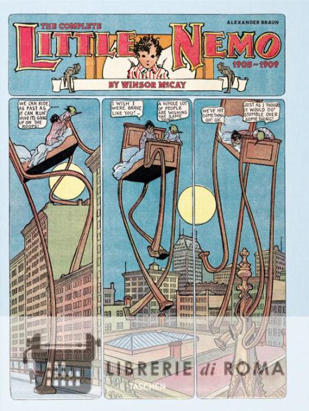 Ecco a voi Little Nemo, il minuscolo eroe di un mondo a fumetti, ma uno dei più grandi viaggiatori del XX secolo e un capolavoro di immaginazione narrativa. Creato da Winsor McCay (1869-1934), l'instancabile dormiglione ha ispirato generazioni di artisti con le sue entusiasmanti avventure settimanali che lo portavano dal suo letto al Paese del dormiveglia, un regno fantastico fatto di compagni colorati, ardite soluzioni architettoniche e ambientazioni psichedeliche. Winsor McCay: The Little Nemo 1905-1909 raccoglie in un volume a colori le migliori peripezie notturne di Nemo pubblicate tra il 1905 e il 1909, per farci godere non solo della bellezza del Paese del dormiveglia, surreale fonte di ispirazione per Robert Crumb e Federico Fellini, ma anche dell'uso innovativo del layout e delle tecniche narrative da parte di McCay, oltre che del ritmo coinvolgente e della resa minuziosa di elementi architettonici e dettagli. Nel volume illustrato allegato, lo storico dell'arte ed esperto di fumetti Alexander Braun contestualizza la vita e l'opera di Winsor McCay nella storia culturale dei media e dell'industria dell'entertainment americani, e analizza l'enorme importanza della narrazione onirica di McCay nella storia dell'arte. Al tempo stesso libro d'avventura, gioia per gli occhi e testimonianza storica, questa pubblicazione è uno straordinario monumento a uno dei più innovativi pionieri - e uno dei più intrepidi esploratori - del mondo del fumetto.