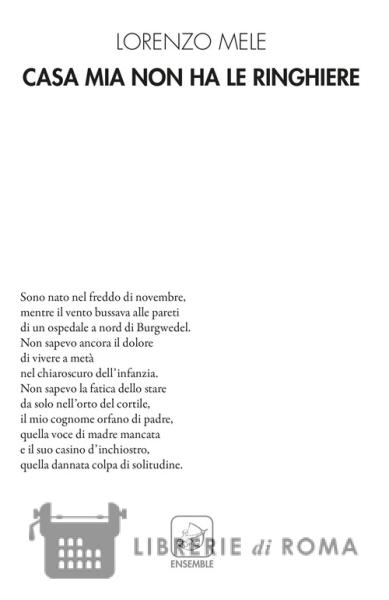 «La poesia di Lorenzo Mele è semplice e complessa assieme. Semplice nel linguaggio, come la poesia di Franco Arminio, ma variegata nei piani di lettura, soprattutto sul versante biografico ed esistenziale. La sua è una "memoria tattile", fa riferimento ai sensi come scatole cinesi dove tutto è possibile, tutto è ritrovabile. La memoria è la casta sorella dell'oblio, ed è impossibile rinnegare il suo accento vibrante sulle nostre ore. "Cenere e spavento": Lorenzo Mele si serve dell'ossimoro per raccontare il flusso delle sue memorie; ci tiene all'azione taumaturgica delle stesse, ma allo stesso tempo sa che il passato può tirare i remi in barca, lasciarci immobili in una palude perniciosa. Mele si salva con la poesia, e rimedia di ciò che la vita gli ha tolto fermando in istantanee, in "gergo di fotografia" quel che la vita gli ha tolto e, per converso, gli ha regalato» (dalla prefazione di Fabrizio Cavallaro).