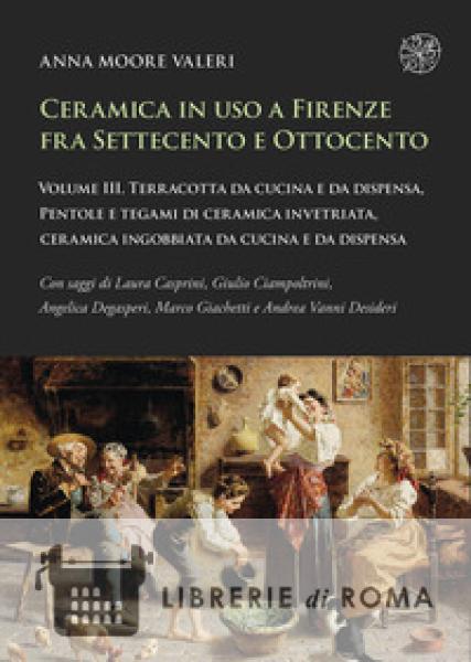 Il terzo e ultimo volume della Ceramica in uso a Firenze fra Settecento e Ottocento tratta la terracotta (orci da vino, da olio, e da tabacco, conche, vasi da giardino), ceramica invetriata da tavola, da dispensa e da cucina, ceramica ingobbiata (in particolare i catini schizzati di verde), la terraglia nera e gli scaldini, dopo che il primo volume si era occupato esclusivamente di maiolica e il secondo volume, scritto con Alessandro Biancalana, di porcellana e terraglia.Con questo volume si conclude un lungo lavoro dedicato alla ceramica di un'epoca molto importante per la comparsa e l'affermarsi della porcellana europea, ma poco studiata per quanto riguarda le altre tipologie, specialmente la ceramica di uso comune. Lo studio si basa in parte sui reperti da scavi archeologici toscani, ma l'evolversi delle mode e i cambiamenti di gusto sono filtrati soprattutto attraverso i documenti che attestano gli acquisti di ceramiche di alcune importanti famiglie fiorentine, in particolare quelli della Corte Granducale.