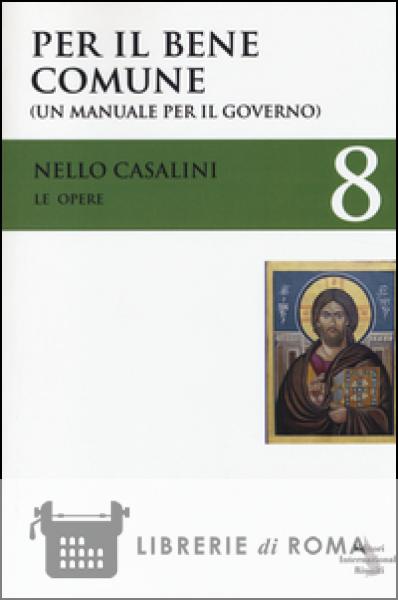 Il tempo passa inarrestabile e i Governi in Italia si susseguono in modo rapido e in continuazione, come se fossero mere comparse di una scena teatrale. Ma i gravi problemi che affliggono il nostro popolo restano e attendono ancora una soluzione. Ciò giustifica l'attualità di questo volume delle "Opere" di Nello Casalini, che sotto il titolo "Per il bene comune" riunisce due opere distinte di un tempo antecedente. Il primo, "Postface al '68", raccoglie la viva rievocazione della contestazione studentesca, di cui fu partecipe in quel momento, con un ponderato giudizio storico, che ne mostra il perdurante effetto nel costume del popolo italiano e i valori che ha promosso, e che sono ancora validi per il nostro tempo: la libertà di coscienza in ogni scelta etica, la solidarietà umana, la condivisione della responsabilità nella cosa pubblica e il principio di tolleranza verso tutte le differenze affettive, di idee e di religione. Il secondo, "Manuale per il Governo", è costituito da un fitto dossier di lettere realmente scritte alle massime Autorità dello Stato, in particolare ai Capi di Governo del recente passato (R. Prodi, S. Berlusconi, M. Monti) e al Presidente della Repubblica, Sig. Giorgio Napolitano, ancora in funzione. Il loro scopo quindi non era di insegnare presumendo un sapere superiore, ma solo quello di collaborare fraternamente indicando un metodo per il "buon governo", a vantaggio di tutto il popolo, proponendo possibili soluzioni per i problemi più gravi.