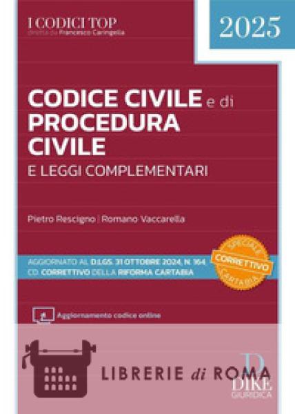 Librerie di Roma | Codice civile e di procedura civile e leggi complementari 2025. Aggiornato al D.Lgs. 31 ottobre 2024, n. 164, cd. Correttivo della Riforma Cartabia