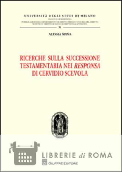 Librerie di Roma | Ricerche sulla successione testamentaria nei «Responsa» di Cervidio Scevola