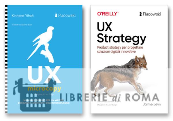 ACQUISTABILI ANCHE SINGOLARMENTE - Una coppia di libri che non possono mancare nello scaffale di un digital marketer professionista. Rappresentano i volti della stessa medaglia. Da una parte UX Strategy è necessario per indagare il mercato, conoscere la buyer persona, fare il pelo e contropelo alla concorrenza e identificare tutte le feature a cui il pubblico è abituato e quelle che potrebbero risolvere i suoi problemi. Quindi disegnare un prodotto digitale che si adatti perfettamente alle esigenze di un pubblico ben preciso. Dall'altra parte UX Microcopy è un testo fondamentale per definire mission, vision, tone of voice (missione, visione e tono di voce) del brand, quindi stabilire la sua identità e il suo carattere. Solo dopo aver stabilito questi fattori, l'autrice inizia ad analizzare un sito web ideale, pagina dopo pagina, pulsante dopo pulsante, toolkit dopo toolkit, per spiegare con innumerevoli casi studio come usare in modo corretto i microtesti.