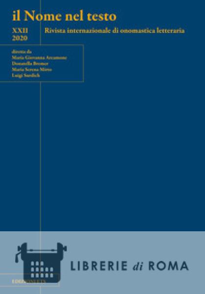 «Giunto al suo XXII volume annuale, "il Nome nel testo" continua a rappresentare il testimone più attendibile dello stato della ricerca sui nomi letterari in Italia. A dimostrarlo, più che enunciazioni di principio o affermazioni di narcisismo autopromozionale, sono ancora una volta i ventisette saggi pubblicati in questa sede, raggruppati in sei sezioni tematiche (cui si aggiungono, come si dirà, due rubriche), nelle quali trova spazio un'ampia e significativa rappresentanza di àmbiti disciplinari, approcci metodologici generali e specificamente onomastici, differenziati corpora di autori e testi indagati. Per entrare nel dettaglio, la sezione iniziale è dedicata alla presenza del nome nelle lettere, nei diari, nei taccuini, testi stigmatizzati spesso quali meri collettori di trouvailles o come bric-à-brac di curiosità biografiche. Il territorio dell'inedito, del provvisorio, del preparatorio che si spalanca agli occhi degli studiosi prelude invece, se adeguatamente analizzato, alle scelte onomastiche definitive di un autore. Così l'esplorazione del vasto archivio privato di Giuliano Scabia, realizzata da Laura Vallortigara, consente di individuare gli elenchi preparatori di nomi e, con essi, la genesi e i moventi (su cui un peso determinante ha la curiositas linguistica dell'autore) della nominazione nella tetralogia di Nane Oca. Le carte private di Antonio Delfini, un vero e proprio "mondo sommerso", consentono a Luigi Sasso di mettere in luce un'accesa imagery onomastica, sperimentale e spesso sorprendente, che è ricondotta al tentativo dello scrittore, impervio e continuamente frustrato, di rinnovare le tradizionali strutture del romanzo, consunte anche sul piano onomastico, usando il nome come un "colpo di dadi che potrebbe far scattare il meccanismo narrativo, il movimento della pagina"(...)» (dalla Presentazione)