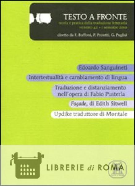 "Testo a fronte" è una pubblicazione semestrale di teoria e pratica della traduzione letteraria diretta da Franco Buffoni, Allen Mandelbaum, Emilio Mattioli. La rivista, che propone articoli, riflessioni, brevi saggi di traduzione, recensioni e segnalazioni, affianca ai grandi nomi sia in ambito saggistico sia in ambito creativo, i nomi di giovani studiosi e poeti.
