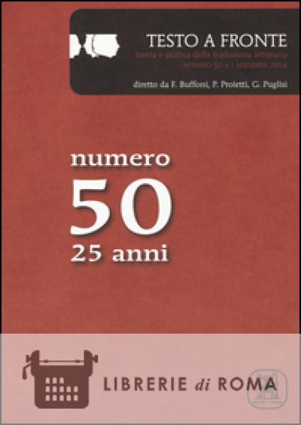 "Testo a fronte" è una pubblicazione semestrale di teoria e pratica della traduzione letteraria. La rivista, che propone articoli, riflessioni, brevi saggi di traduzione, recensioni e segnalazioni, affianca ai grandi nomi sia in ambito saggistico sia in ambito creativo, i nomi di giovani studiosi e poeti.