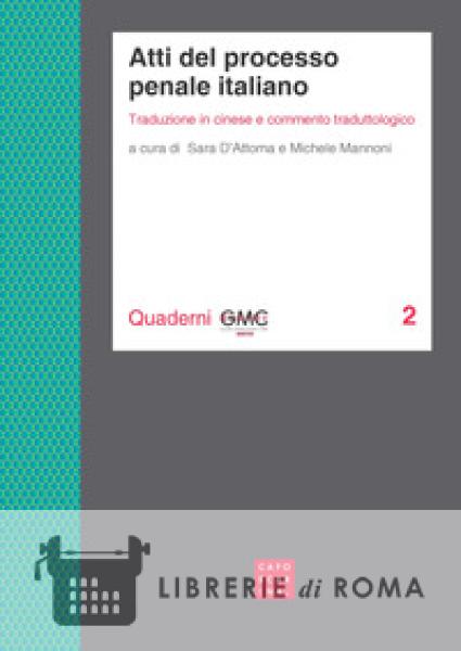 Il secondo volume della collana dei Quaderni del Master GMC si focalizza sulla traduzione in cinese, e sullo studio traduttologico degli atti del processo penale italiano, ponendosi così in continuità con lo studio intrapreso nel precedente volume (Quaderno 1) per gli atti del processo civile italiano. Nello specifico, la redazione del presente volume nasce dall'esigenza di porre al servizio del traduttore uno strumento per affrontare i testi che, in base all'articolo 143 del Codice di procedura penale italiano, devono essere tradotti nel caso in cui l'imputato non conosca la lingua italiana, in modo da garantire allo stesso l'esercizio del diritto di difesa. Gli atti processuali vengono dapprima introdotti e illustrati in riferimento alla prassi d'uso, e successivamente riportati in modelli standard con la loro versione in cinese. Gli atti sono affiancati da concise spiegazioni utili per una comprensione del testo anche ai non addetti e sono seguiti da una succinta analisi terminologica e traduttologica che permette al lettore di comprendere le scelte operate in fase di traduzione.