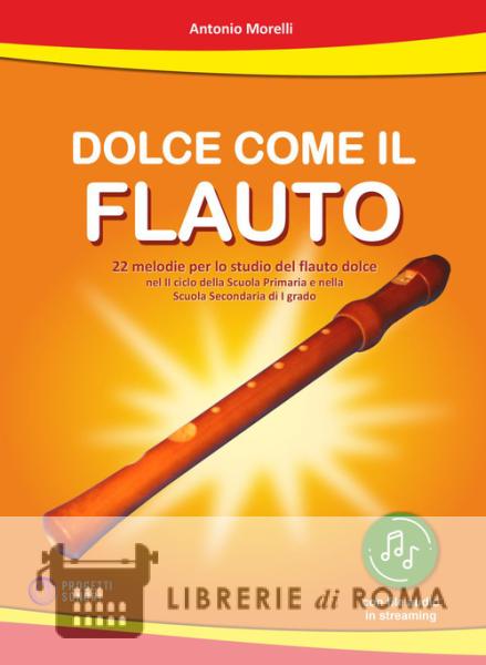 "Dolce come il flauto" è un'antologia di brani musicali per la pratica del flauto dolce nel II ciclo della Scuola Primaria e nella Scuola Secondaria di I grado. I 22 brani contenuti nel libro permettono all'allievo di scoprire con gradualità le possibilità tecniche ed espressive del flauto dolce: dalle prime melodie, sviluppate su semplici frasi che consentono di memorizzare facilmente le articolazioni delle dita della mano sinistra, a composizioni via via più elaborate che coinvolgono progressivamente le dita della mano destra, fino a completare la scala musicale di Do. "Dolce come il flauto" valorizza il flauto dolce come efficace strumento didattico, capace di sviluppare abilità motorie, controllo del respiro, articolazione del suono e sensibilità musicale, avvicinando l'allievo alla bellezza della musica anche attraverso semplici melodie. Ventidue melodie per: imparare a produrre suoni di qualità, grazie a un respiro corretto e uniforme; imparare ad articolare le dita in modo armonico; imparare a condurre le frasi musicali nel rispetto dei valori melodici e ritmici; imparare ad ascoltare e ad ascoltarsi nelle esecuzioni d'insieme. "Dolce come il flauto", per dare al nostro strumento la dignità che merita e iniziare un piacevole viaggio fatto di suoni e melodie, alla ri-scoperta del flauto dolce e delle sue qualità. Con File audio in streaming, usufruibili tramite App.