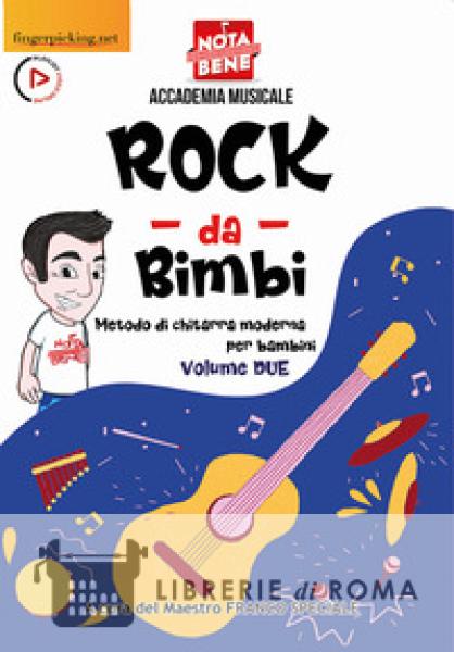 Con questo secondo volume si completa la collana Rock da Bimbi che permetterà ad ogni nuovo rocker di avere le basi per poter suonare la chitarra in pieno stile moderno. I due volumi, insieme alle basi audio, creano il perfetto corso di avviamento alla chitarra moderna, il tutto sotto la supervisione del proprio insegnante. Prosegue il percorso del primo volume. Un capitolo è dedicato allo studio della struttura Blues nella forma semplice. Le tonalità aumentano fino a 4 diesis in chiave tonalità di Ml e 2 bemolle tonalità di Slb. Si approfondisce la conoscenza degli accordi, compresi quelli con il barrè. Si studiano le prime posizioni delle scale maggiori e pentatoniche. 30 Songs suonate e 30 basi per la pratica.