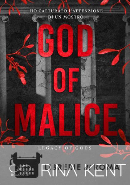 Ci sono incontri che ti cambiano per sempre. E mostri che si nutrono delle tue paure più profonde. Per Glyndon King, erede di una delle famiglie più influenti della Gran Bretagna, l'arte è una valvola di sfogo dietro alla quale cela un dolore che la sta consumando. Una notte, sul bordo di una scogliera battuta dal vento, incontra Killian Carson. Studente di medicina dall'aspetto angelico e dall'anima demoniaca, Killian vede in lei qualcosa che nessun altro ha mai notato: un'oscurità che rispecchia la sua. Con la freddezza di un predatore e la precisione di un chirurgo, Killian si insinua nella vita di Glyndon, dando inizio a un'ossessione reciproca. Lui è determinato a possederla completamente. Lei è incapace di resistere al richiamo dell'abisso che Killian rappresenta. In un pericoloso gioco di potere e sottomissione, entrambi scopriranno che le cicatrici più profonde sono quelle invisibili e che, a volte, è proprio nella totale oscurità che si può trovare la luce più accecante. Avvertenze: God of Malice, primo romanzo della serie Legacy of Gods, contiene scene di sesso non consensuale, altre dove il consenso è dubbio e rappresentazione di pensieri suicidi.