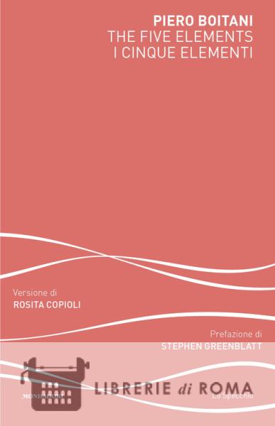 Nutrito di poesia anglosassone al punto da comporre in inglese il suo originalissimo "poemetto presocratico", Piero Boitani ne ha affidato la resa italiana alla raffinata voce poetica di Rosita Copioli. «Costruito sull'intelaiatura teorica ereditata dalla serie straordinaria dei pensatori antichi - commenta Stephen Greenblatt - The Five Elements indossa la sua filosofia con leggerezza. O, piuttosto, approfitta appieno dei modi in cui i filosofi presocratici, senza mai interamente ripudiare il brillante, astratto logos introdotto da Parmenide, fecero spazio al mythos. Gli dèi greci e romani che agiscono nei grandi poemi epici dell'antichità appaiono nei versi di Boitani, ma lo fanno in relazione agli elementi fondanti cui ciascuno era assegnato. L'effetto è una sorta di fioritura di associazioni. La struttura del poema è la struttura della fisica antica - questi sono gli elementi di base di cui è fatto l'universo -, ma nella visione di Boitani si afferra il significato di tale struttura soltanto abbracciando le variazioni e le trasformazioni spettacolari di ciascuno di tali elementi. L'abbraccio ha luogo nelle storie mitiche che ci sono state tramandate dal passato classico, ma anche nell'esperienza della vita vissuta del poeta stesso. Perché, suggerisce Boitani, si giunge a comprendere appieno i miti scavando nella miniera della storia della propria vita, proprio come si arriva a comprendere la storia della propria vita scavando nella miniera dei miti.» Mescolando inni omerici e orfici con reminiscenze di Shakespeare, Lucrezio, Esiodo, Pindaro, oltre che di Hölderlin, di Shelley e di Leopardi, Boitani racconta anche la propria personale educazione intellettuale e sentimentale: perché i singoli cinque elementi non significherebbero nulla se l'essere umano non vivesse in loro. E fornisce così al lettore una visione di come si possa fare esperienza del mito, vivere in esso, e insieme percepire e giungere a conoscere l'essenza della natura: attraverso il tempo e lo spazio, e cioè l'intera storia umana e ovunque nel mondo. Contrario al detto oraziano caelum, non animum mutant qui trans mare currunt, Boitani è convinto che «gli esseri umani non abbiano modo migliore per conoscere il mondo e sé stessi che attraverso il viaggiare». Il vero cuore dei suoi incontri con gli dèi risiede proprio nei viaggi: insieme all'autore, viaggiatore instancabile, persino ossessivo, sempre «sulle orme di Ulisse» (l'Ulisse di Omero, di Dante e di Tennyson), il lettore è invitato a riandare indietro con la mente attraverso la propria vita e individuare quei momenti in cui gli si è rivelata appieno la potenza dell'acqua, del fuoco, della terra e dell'aria. E il silenzio dell'etere, la Stille des Aethers, di cui parla Hölderlin.