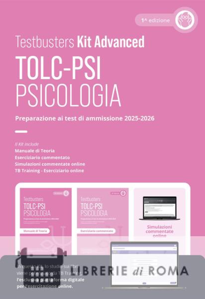 Il Kit per la preparazione al test TOLC-PSI per le facoltà di Psicologia accompagna le diverse fasi del tuo studio: dall'apprendimento dei concetti teorici, all'allenamento sui quiz delle diverse materie, fino allo svolgimento di simulazioni che ricalcano fedelmente il test ufficiale. Gli esercizi, di difficoltà medio-alta, sono accompagnati da correzioni commentate per aiutarti ad affrontare con fiducia il test. Il kit comprende risorse cartacee e digitali: Manuale di teoria: Completo ed essenziale, arricchito con esercitazioni pratiche guidate, videolezioni e contenuti in realtà aumentata. Eserciziario commentato: Migliaia di quesiti commentati, suddivisi per materia e argomento. Disponibile anche in versione digitale sul nostro Simulatore Online Testbusters, per esercitarti dove e quando vuoi.?Simulazioni commentate: Le simulazioni, disponibili sul Simulatore Online Testbusters, potranno essere svolte da qualsiasi dispositivo. Potrai monitorare i tuoi progressi e confrontare i tuoi punteggi con gli altri studenti Testbusters.?TB Training: oltre 500 esercizi divisi per materia; oltre 100 video-correzioni; supporto didattico da parte dei docenti Testbusters.