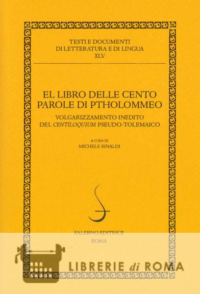 Librerie di Roma | El libro delle cento parole di Ptholommeo. Volgarizzamento inedito del Centiloquium pseudo-tolemaico