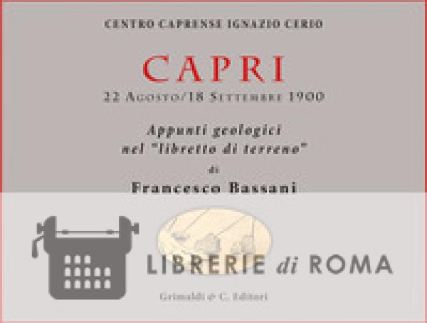 Grazioso manoscritto (unicum) inedito di Francesco Bassani (Thiene, 1853 - Capri, 1916), geologo e paleontologo, direttore dell'Istituto di Geologia dell'Università di Napoli. Esso rappresenta l'unica testimonianza del suo prolungato soggiorno sull'isola di Capri con la famiglia, dal 22 agosto al 18 settembre del 1900. Si tratta di un "libretto di terreno" nel quale lo scienziato annota osservazioni geologiche corredate da preziosi schizzi dei fossili che incontra nei vari percorsi sull'isola oltre a scorci e una curiosa veduta dell'isola. Il manoscritto è arricchito da brevi saggi che inquadrano le ricerche di Bassani sull'isola e la scienza geologica nell'Ottocento.