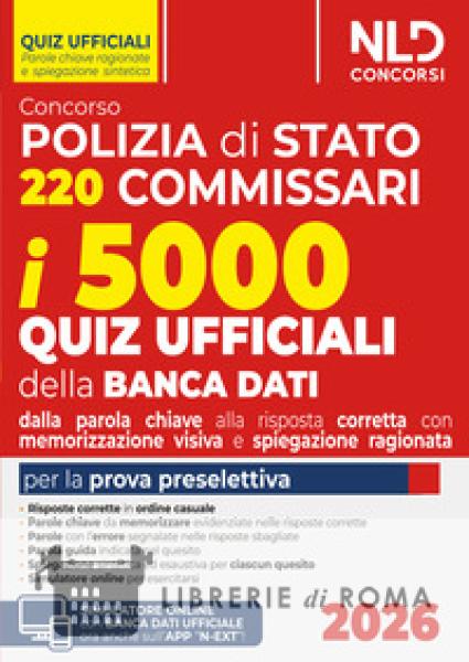 Concorso 220 Commissari Polizia di Stato, manuale con 5000 Quiz Ufficiali della banca dati tutti commentati e con risposta ragionata ed evidenziazione delle parole chiave per individuare subito la risposta corretta e scartare quella inesatta. Nuovo metodo di Memorizzazione visiva Il Ministero dell'Interno ha indetto un concorso pubblico, per titoli ed esami, per l'assunzione di n. 220 Commissari della carriera dei funzionari di Polizia. La procedura concorsuale si articola nelle seguenti fasi: prova preselettiva eventuale; verifica dell'efficienza fisica; accertamenti psico-fisici; accertamento attitudinale; prove scritte; prova orale; Valutazione dei titoli. Il Manuale Concorso 220 posti Commissari Polizia di Stato con 5000 Quiz Ufficiali della banca dati, NLD Concorsi, 2026, viene incontro alle specifiche esigenze di chi deve prepararsi ad affrontare l'eventuale prova preselettiva, che sarà sostenuta su quiz tratti da una Banca dati ufficiale di 5000 quesiti, relativi a 5 materie (penale, processuale penale, civile, costituzionale e amministrativo). Il Volume è uno strumento originalissimo: nei contenuti; negli obiettivi; nelle innovative modalità con cui ciascuno dei quesiti è posto a disposizione di chi deve prepararsi. Quanto ai contenuti, l'Opera contiene l'intera Banca dati ufficiale pubblicata in occasione dell'ultimo concorso per il quale è stata espletata la prova preselettiva, composta da 5.000 quesiti a risposta multipla. Diversi gli obiettivi del Volume e le conseguenti tecniche che lo stesso offre per la memorizzazione e comprensione delle risposte corrette. Il primo e più importante è di agevolare una immediata e duratura memorizzazione delle risposte corrette. In tale prospettiva: diversamente che nella Banca dati pubblicata, per ciascun quesito, la risposta corretta è collocata in ordine casuale, non quindi sempre come prima opzione, così consentendo al candidato di esercitarsi in condizioni analoghe a quelle della prova concorsuale; soprattutto, nella risposta esatta sono evidenziate le parole o combinazioni di parole chiave da memorizzare perché idonee a distinguerla dalle altre tre opzioni errate; al contempo, nelle risposte inesatte sono riportati in corsivo i termini che rivelano l'errore o la deviazione logico-giuridica rispetto alla soluzione corretta. L'approccio visivo e comparativo descritto permette, per ciascun quesito, di identificare immediatamente i termini e i concetti essenziali e di fissarli più facilmente nella memoria, anche per differenza rispetto a opzioni spesso solo apparentemente simili. Il secondo obiettivo dell'Opera è di consentire un'agevole comprensione delle ragioni giuridiche sottese alla risposta esatta. A tal fine, è talvolta evidenziata già nel testo del quesito la parola guida in grado di orientare verso la corretta soluzione; è fornita per ciascun quesito una spiegazione sintetica ma esaustiva, utile a chiarire il fondamento normativo e logico della risposta corretta. Infine, per consentire di esercitarsi al meglio, il Volume consente l'accesso, tramite apposito codice, a un Simulatore online che permette di svolgere simulazioni illimitate, tanto sulle singole materie quanto in modalità concorso, così da allenarsi efficacemente in vista della prova e saggiare costantemente il livello di preparazione.