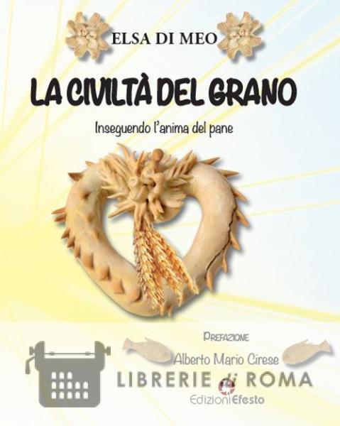 Con "La Civiltà del Grano - Inseguendo l'anima del pane" ed. Efesto, Elsa Di Meo ripropone la ricerca sua e di sua sorella Amelia (che aveva intuito la forte relazione tra il pane rituale e gli elementi decorativi delle opere d'arte) sulla sacralità del pane in Sardegna. Era il 2009 e l'edizione, realizzata grazie al patrocinio e al contributo del Ministero delle Politiche Agricole Alimentari e Forestali fu presentata con una mostra di pani nella Galleria d'arte di Purificato "L'Indicatore" di Roma. Preziosa la prefazione dell'antropologo Alberto Mario Cirese. In questa riproposta l'autrice completa quell'intuizione sulla sacralità del pane osservando nell'Ultima Cena il punto di partenza di un viaggio interiore che accomuna nella ricerca di Dio i pellegrini sulle vie francigene (esperienza realizzata con la Proloco di Cori) e altri spunti di ricerca: la ritualità del pane in Sardegna e in Sicilia (gli altari di San Giuseppe); l'incontro con le civiltà del mais e del riso, i cereali (considerati doni celesti) attorno ai quali come per il grano, si sono sviluppati grandiosi e stupefacenti modelli sociali e culturali.