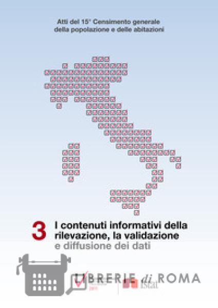 Il terzo volume descrive i contenuti informativi acquisiti tramite i questionari e le unità che sono state oggetto della rilevazione, i processi di controllo, correzione e validazione che hanno portato alla produzione degli aggregati di diffusione, i processi messi in atto per la pubblicazione dei primi risultati, dei dati di popolazione legale e sua struttura demografica e dei dati socio-economici, secondo il piano di diffusione nazionale e quello del Regolamento europeo.