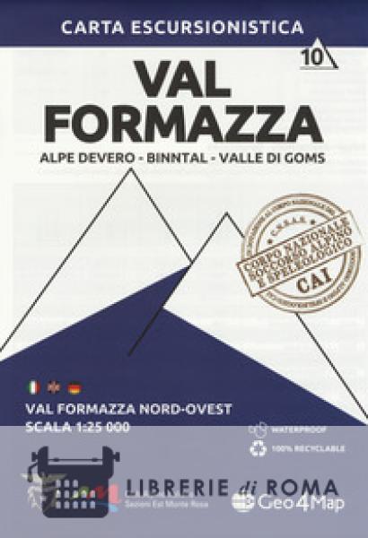 La carta escursionistica Geo4Map della Valle Formazza Nord-Ovest n° 10 è realizzata in scala 1:25.000 con sistema di riferimento UTM/WGS84 zona 32N, con un'ampia rappresentazione del territorio: formato aperto di cm. 104 x 76, formato chiuso cm 19 x 13, a colori. Stampata su carta Stone Paper composta da polvere di pietra, estremamente durevole, idrorepellente, anti riflesso. Le curve di livello a 20 metri, i particolari rocciosi disegnati a mano, i colori e i simboli sono solo alcune delle caratteristiche che permettono di leggere facilmente la cartografia. Nel retro sono stati inseriti una puntuale tabella dei sentieri e importanti nozioni di orientamento e primo soccorso in italiano, inglese e tedesco.