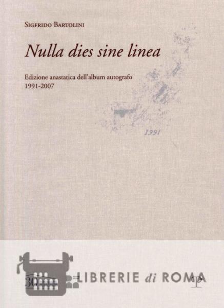 Riproduzione in facsimile dell'album dell'artista Sigfrido Bartolini (Pistoia 1932 - Firenze 2007), manufatto di singolare interesse e di grande qualità artistica. Il prezioso originale conserva una grande varietà di interventi autografi, prevalentemente disegni, realizzati nel corso degli ultimi sedici anni di vita dell'artista. L'intima relazione dell'autore con il segno grafico è esplicitata sin dal titolo in forma di auspicio, Nulla dies sine linea, ossia "non far passare nessun giorno senza un segno", citazione da Plinio che, a sua volta, la attribuiva ad Apelle. "Stupendo e giustissimo consiglio, che non sono riuscito a osservare", chiosava lo stesso Bartolini. Se forse il suo esercizio non fu davvero quotidiano, certo è che l'album testimonia di una lunga e continua consuetudine, in cui trovavano sedimentazione sia ricordi che studi destinati in seguito a prendere la via definitiva di opere autonome: dipinti, acquarelli, incisioni.