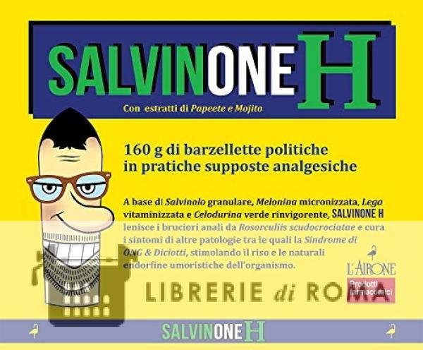 Composizione: 1 supposta di Salvinone H contiene Salvinolo granulare allo stato puro (85 mg), Melonina micronizzata (60 mg), Lega vitaminizzata (40 mg), Celodurina verde rinvigorente (25 mg), estratti di Papeete e Mojito (5 mg), enzima anti-M5S (1 mg). Indicazioni terapeutiche: Grazie alla sua azione analgesica, lubrificante e riso-dilatatrice, Salvinone H stimola le naturali endorfine umoristiche dell'organismo contro diverse patologie, quali: bruciori della zona anale e perianale dovuti a Rosorculiis scudocrociatae; sindrome di ONG & Diciotti; morbo di Primaglitagliani accompagnato o meno da sfoghi cutanei del tipo Incauta Dimissio Inculammameta. Salvinone H si è inoltre rivelato efficace anche contro i disturbi intestinali riconducibili alla sindrome del Tracollo politico Legameloni, nonché contro altre infezioni quali Tweeteria acuta e Paraculiosi. Avvertenze: Si consiglia l'assunzione del farmacomico durante l'intera legislatura, pre- o post-dimissioni ministeriali.